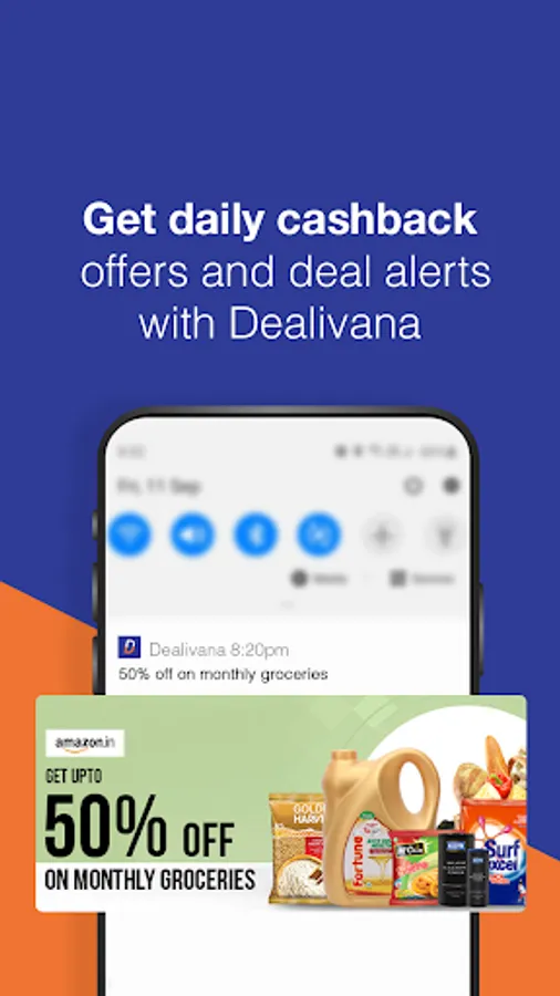 Dealivana has teamed up with the top online stores to put some money back in the shoppers' pocket in the form of cashback. Whether you are stocking up groceries or buying medicines, you can explore our app to find the best and suitable offer for yourself.