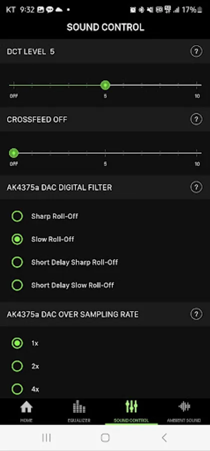 - Detail sound control for EarStudio such as Analog volume, DAC Digital filter and DAC Over sampling rate.