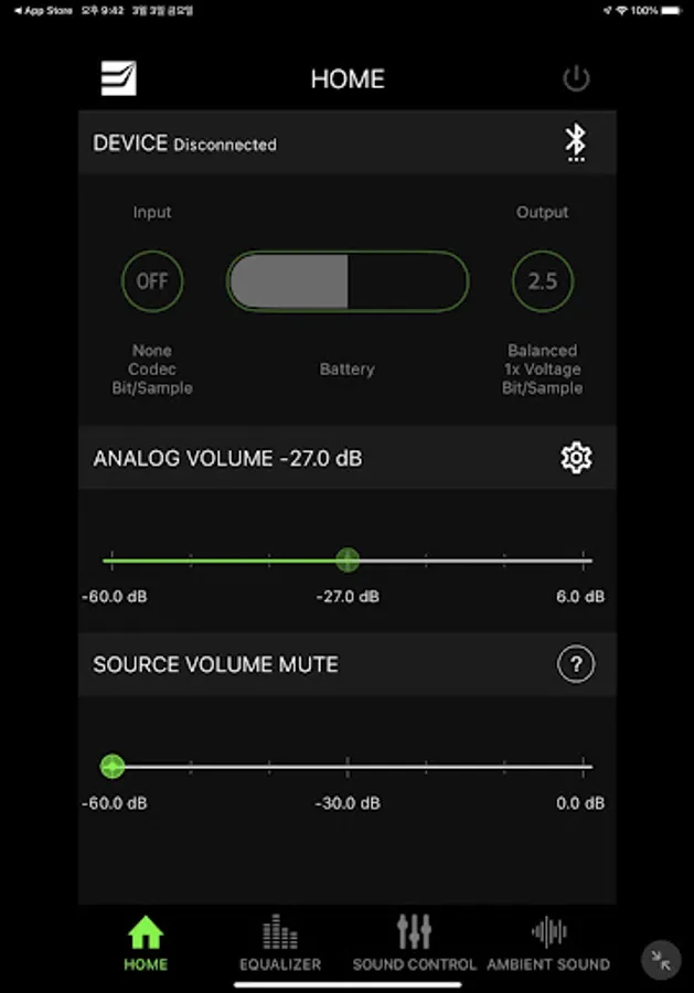 - Displays name, version, battery status, playback information and many others of the EarStudio device.