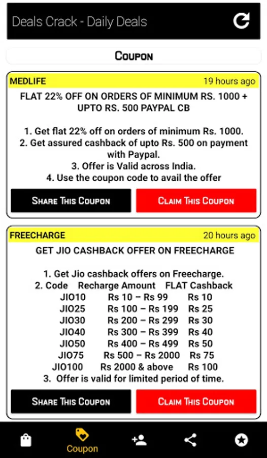 In Deals Crack App you get the latest coupons, discounts, deals & offers from several Online Shopping Websites in India. We bring you the latest, active & often hidden deals and coupons.