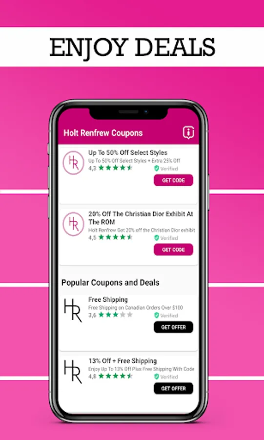 An useful app where you find many promotion for Holt Renfrew, Save your money for things you buy. Get easy access to constantly updated discount codes, promotions and deals.