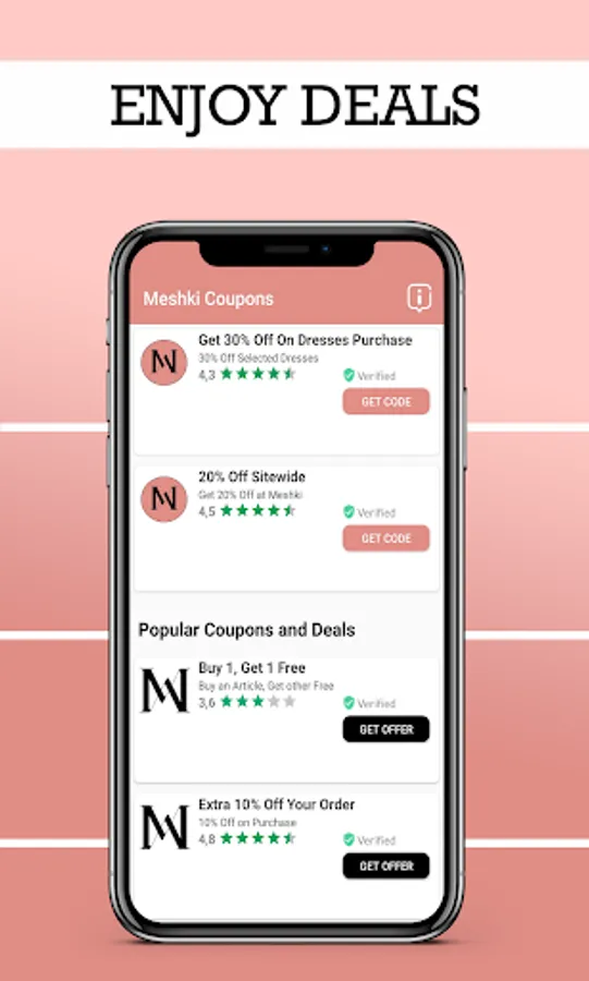 Note that this E Coupons for Meshki App is not an Official App and its not related to the Official Company. This App is belong to independent developer So If there is any query, please feel free to contact us.