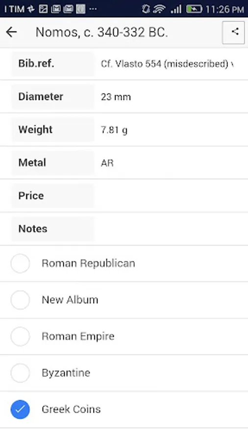 - classify your coins with an optimized form designed by numismatists for numismatists (ruler, mint, coin type, obverse, reverse, bibliography, weight, diameter, etc.)