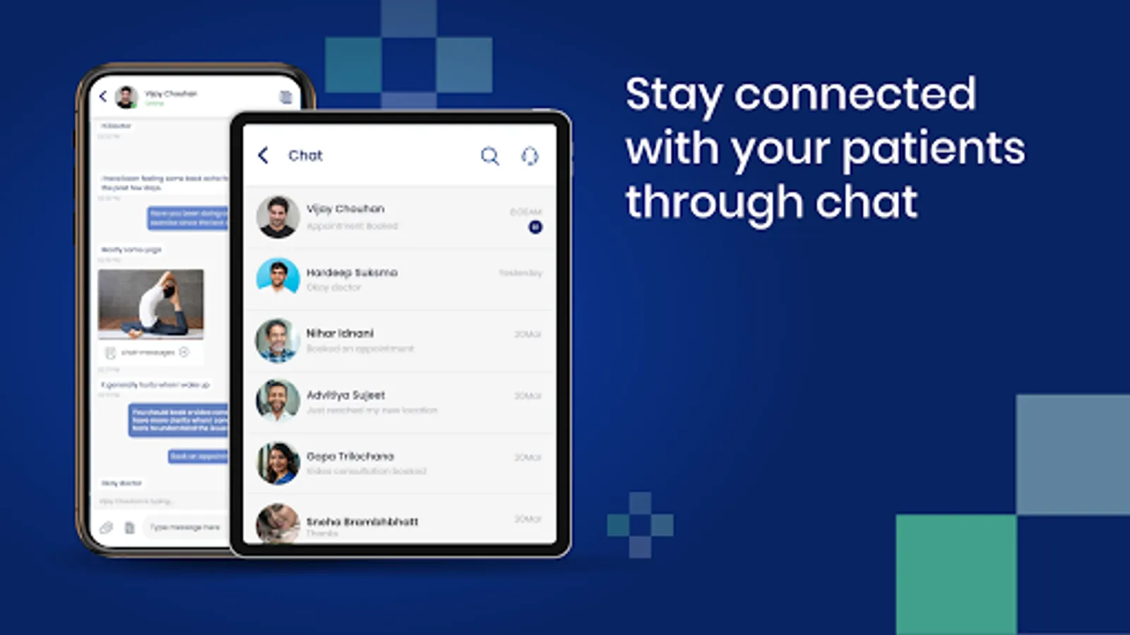 DearDoc helps you connect with your patients outside of consultations. Share messages and media with your patients and chat with them Basis your availability and preferences.