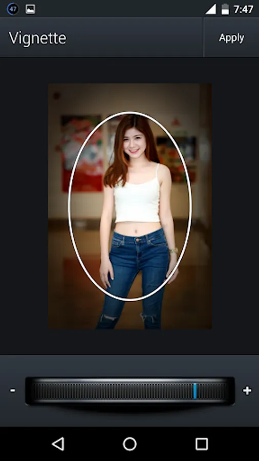 🟊 Apply vignette effect for different values using vignette seek bar.