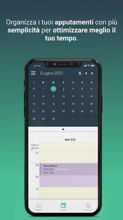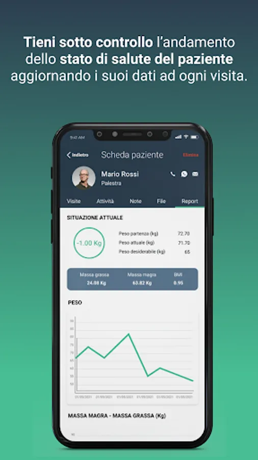 Organize and plan the visits of your patients. Enter the anthropometric data collected and write down all the most important information that will help you keep the patient's progress and compliance with the diet monitored.