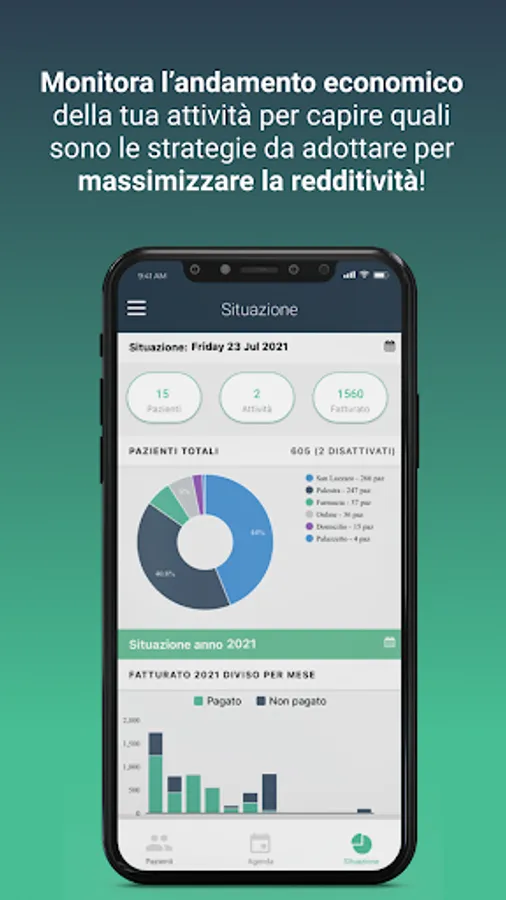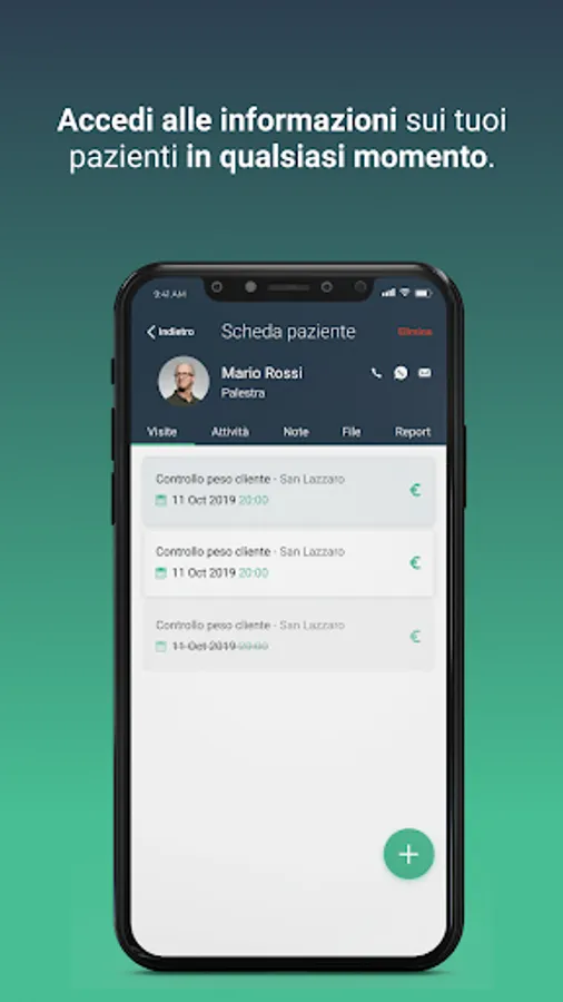Set the reminder to send an automatic SMS at the set time to remind the patient of the appointment. You can decide to set pre-visit and / or post-visit reminder sms!