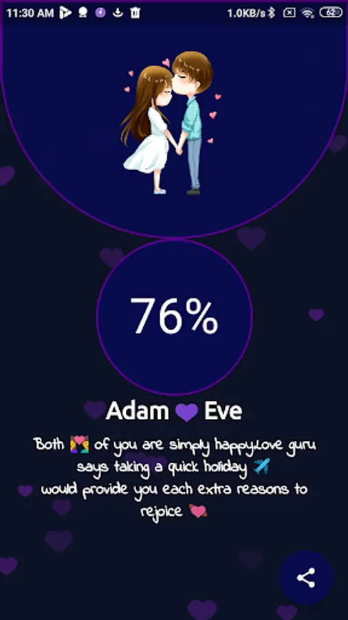 LoveCal-C is a love calculator for fun loving people,This will test how much your names match with each other.Install LoveCal-C and Test how much your name match with your loved One and share with them.