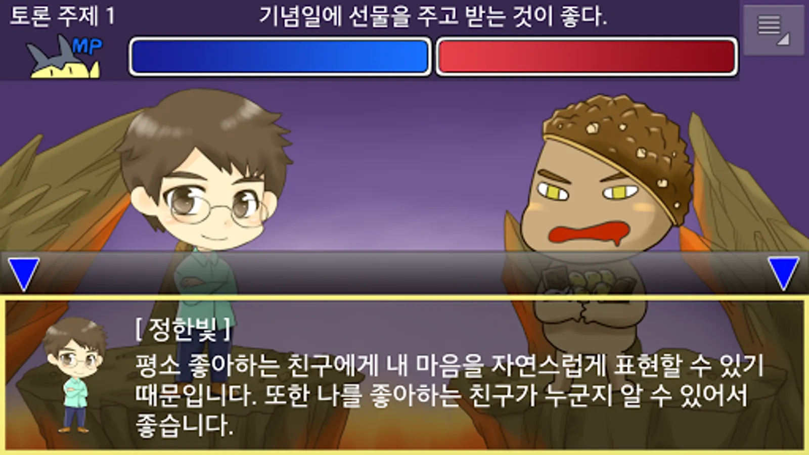 2. 토론 배틀: 몬스터들과 흥미진진한 토론 대결을 합니다.