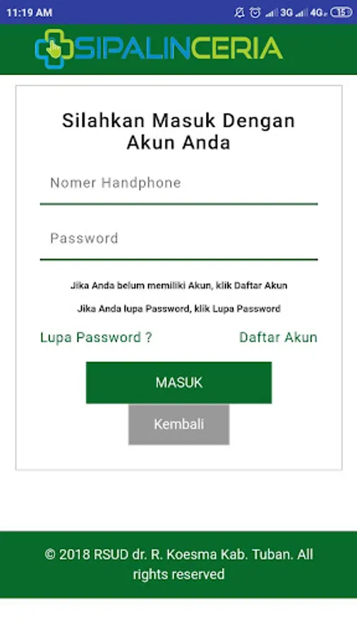 Aplikasi ini telah pula terintegrasi dengan aplikasi SIRANAP (Sistem Informasi Rawat Inap) Kemenrian Kesehatan dan Tuban Smart City.