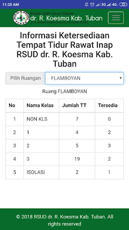 ketersedian kamar rawat inap,