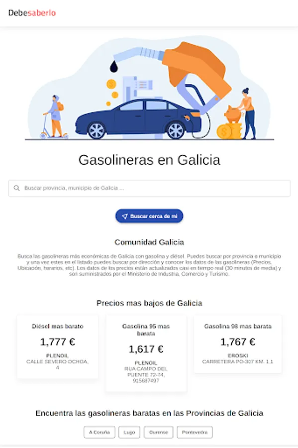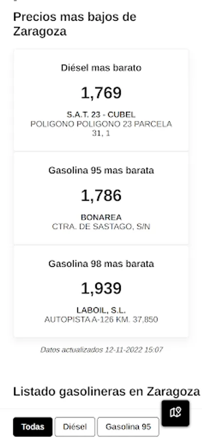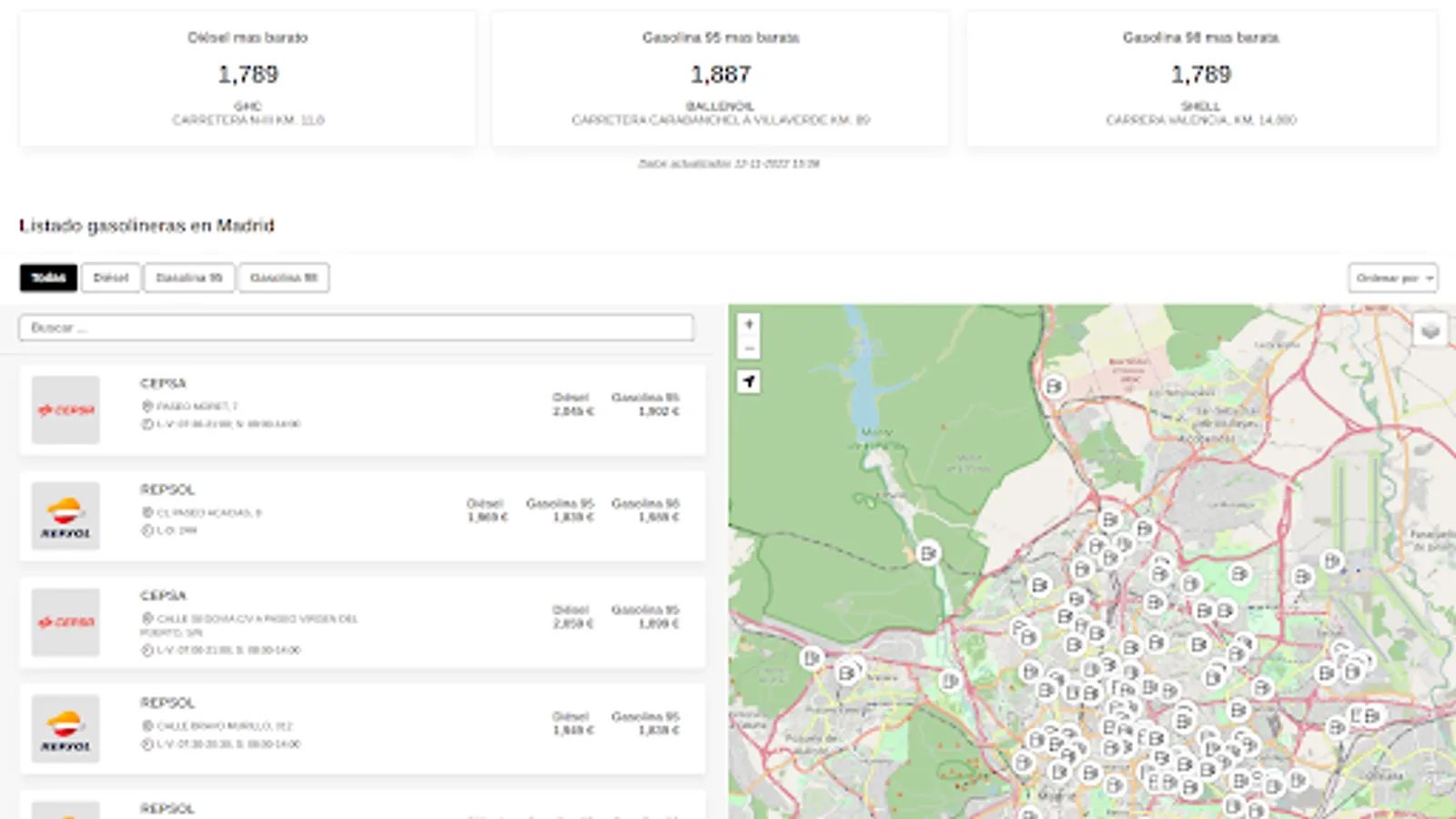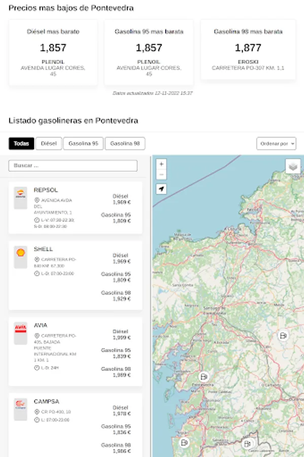 Check and compare the price of gasoline or diesel at all gas stations in Spain. Find the cheapest price and start saving.