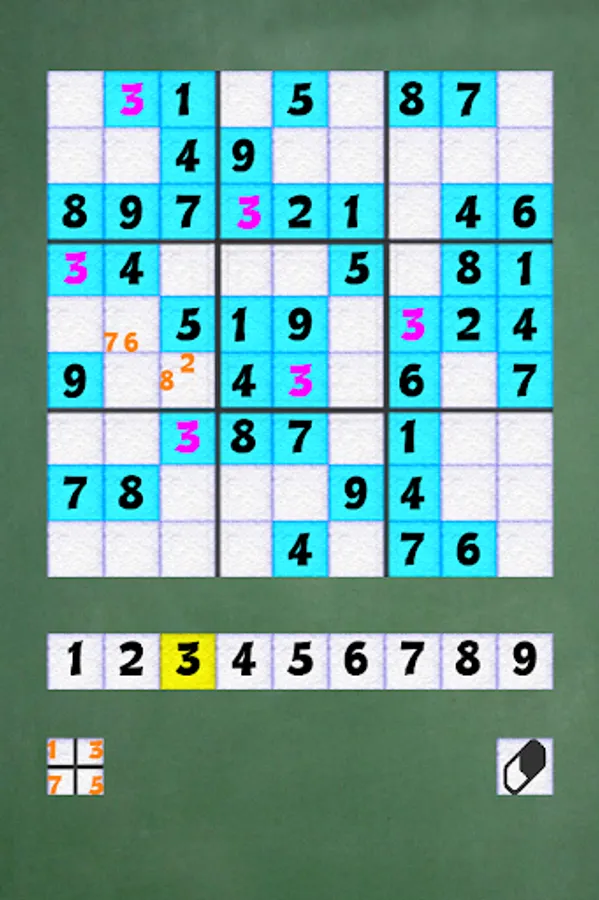 Sudoku is a brain challenging number game, played on a 9x9 sudoku board. The sudoku board is broken down into nine 3x3 squares. The object of the sudoku game is simple. Every row, column, and 3x3 box in the sudoku board must contain the digits 1 through 9 only once! As the difficulty progresses, the sudoku game becomes harder, and you'll have to employ more advanced and strategic logic to solve the puzzles.