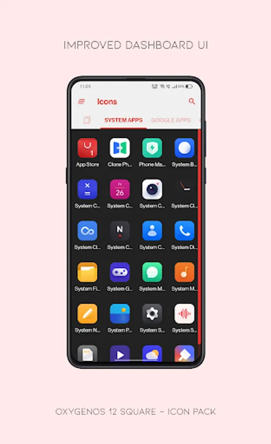 This icon pack consists of minimal looking, rounded square shaped icons with soft shadows and perception of depth from OxygenOS 12.