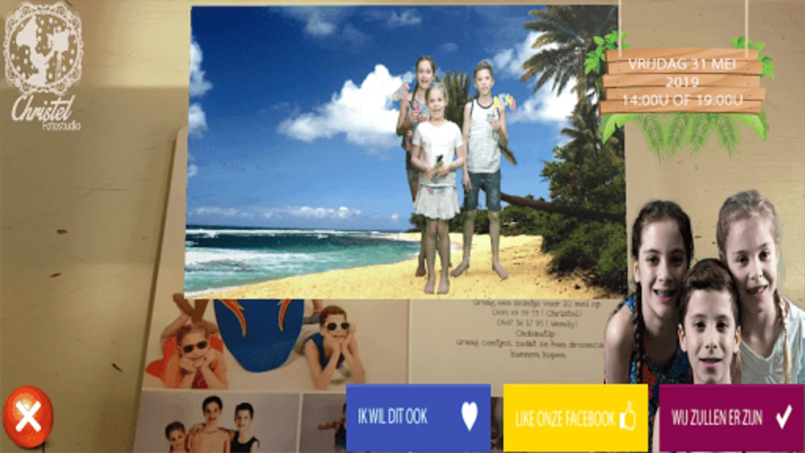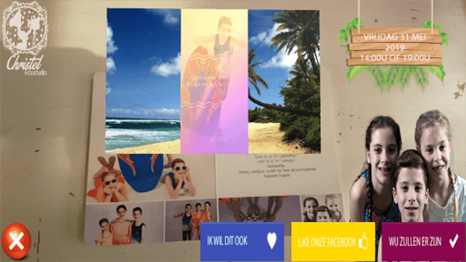 This app brings your card to life by using augmented reality. Install the app and scan your card. This is only in combination with a product from 'Fotostudio Christel'.