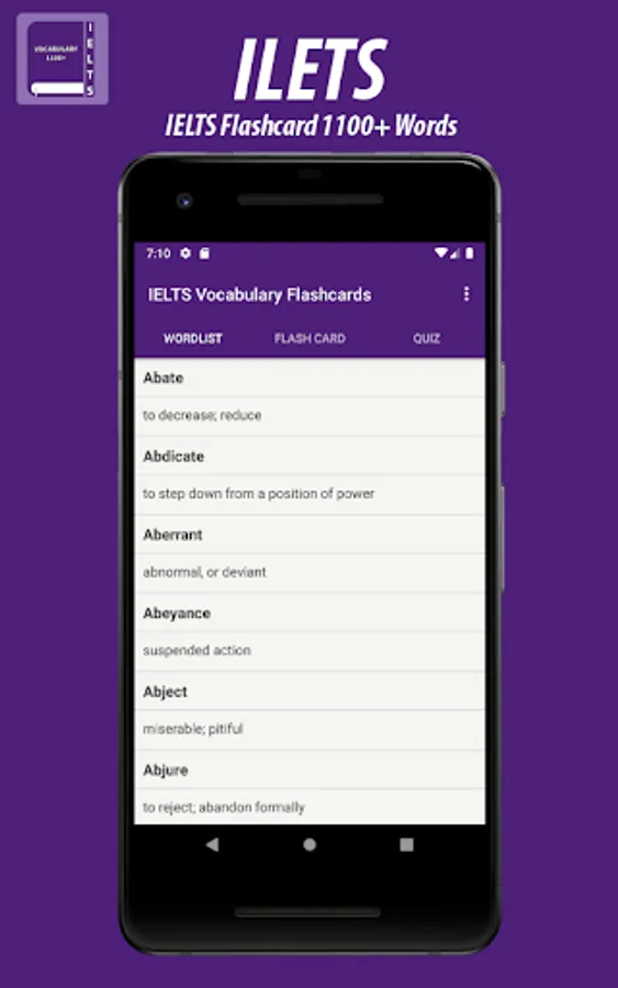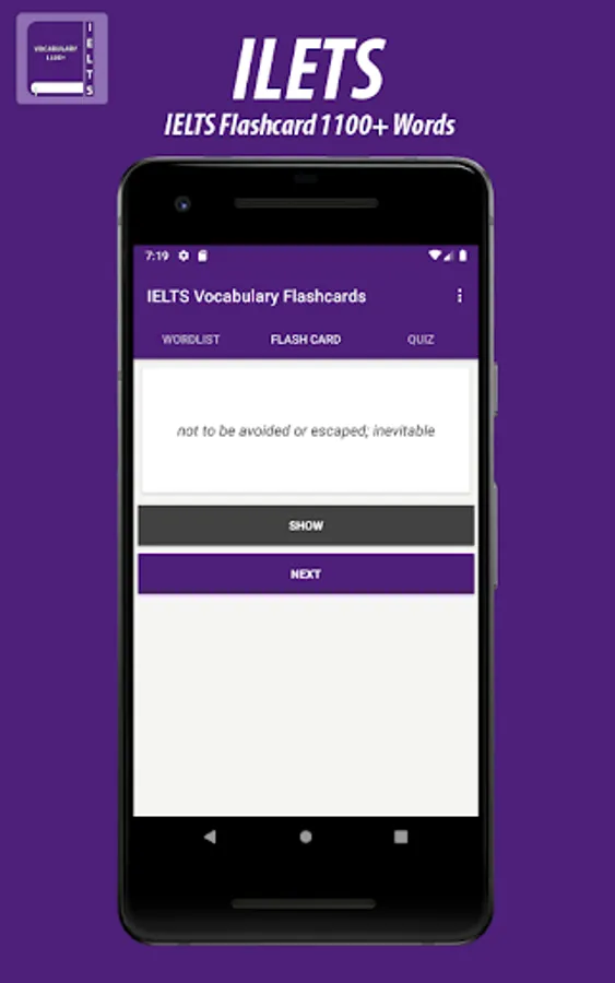 You can practice using Vocabulary Flashcards and if You upgrade it pro version you can give ILETS vocabulary quiz or mock test.