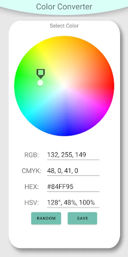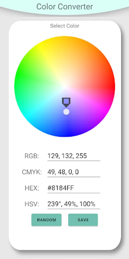 Renk paletinden seçtiğiniz rengin RGB, CMYK, HEX ve HSV karşılığını verir.