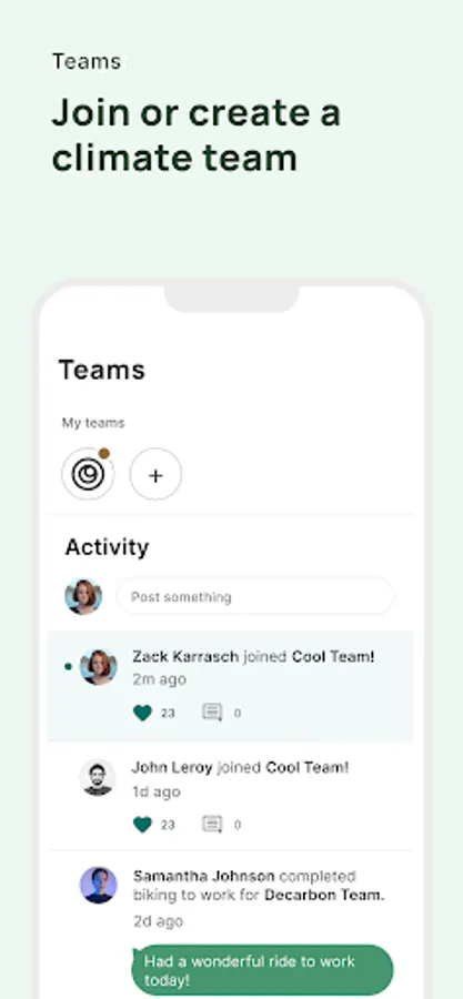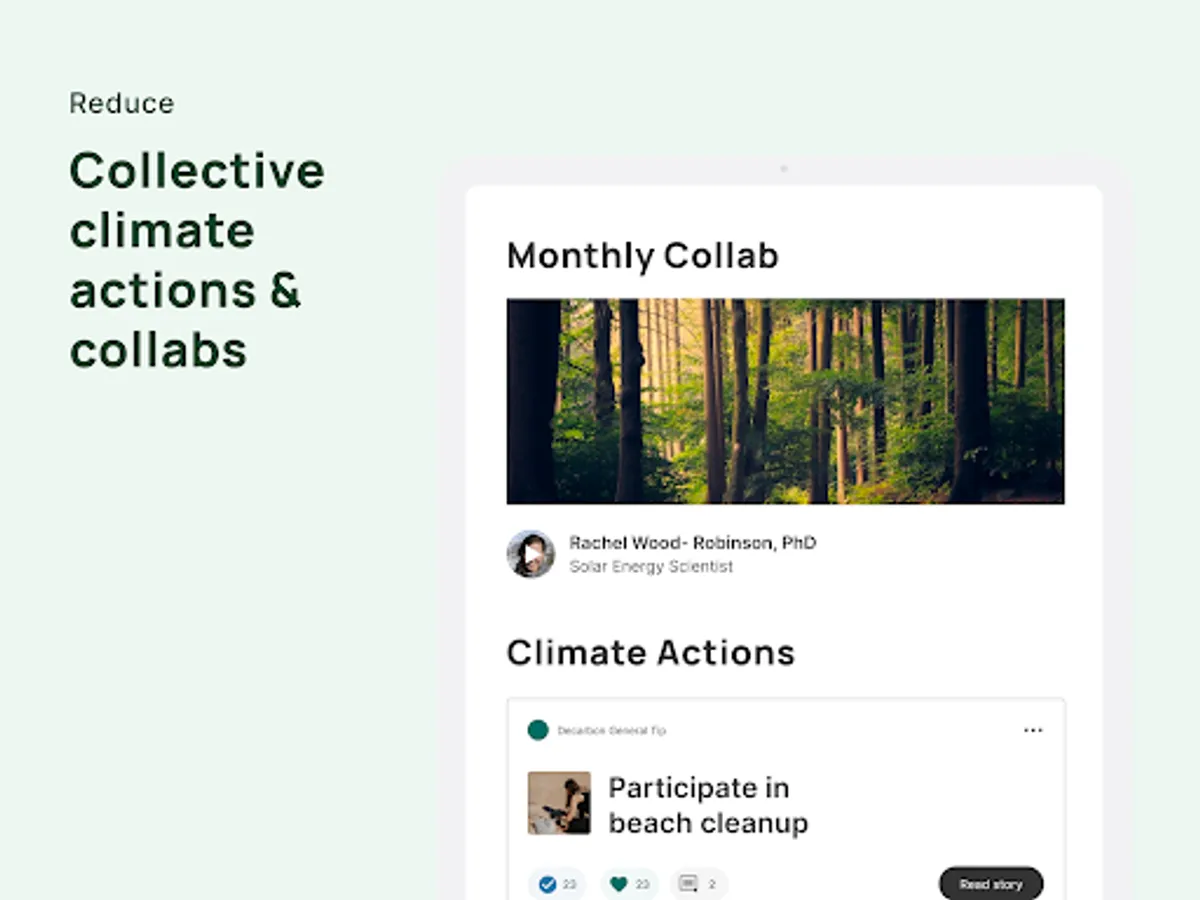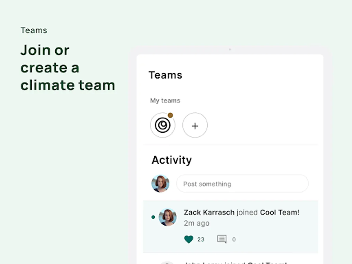 - Join climate action teams and collabs to get inspired and stay motivated with friends, colleagues, and leaders in the climate movement