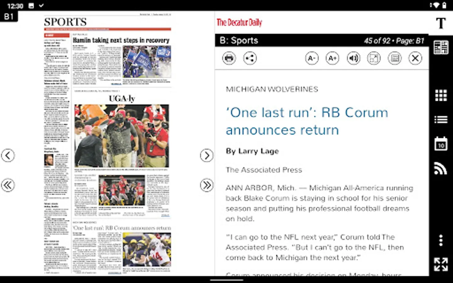 The "DecaturDaily eEdition" is an exact digital replica of the printed newspaper. Readers of the paper can flip through the pages, read stories, photos, and view ads just as they appeared in print.