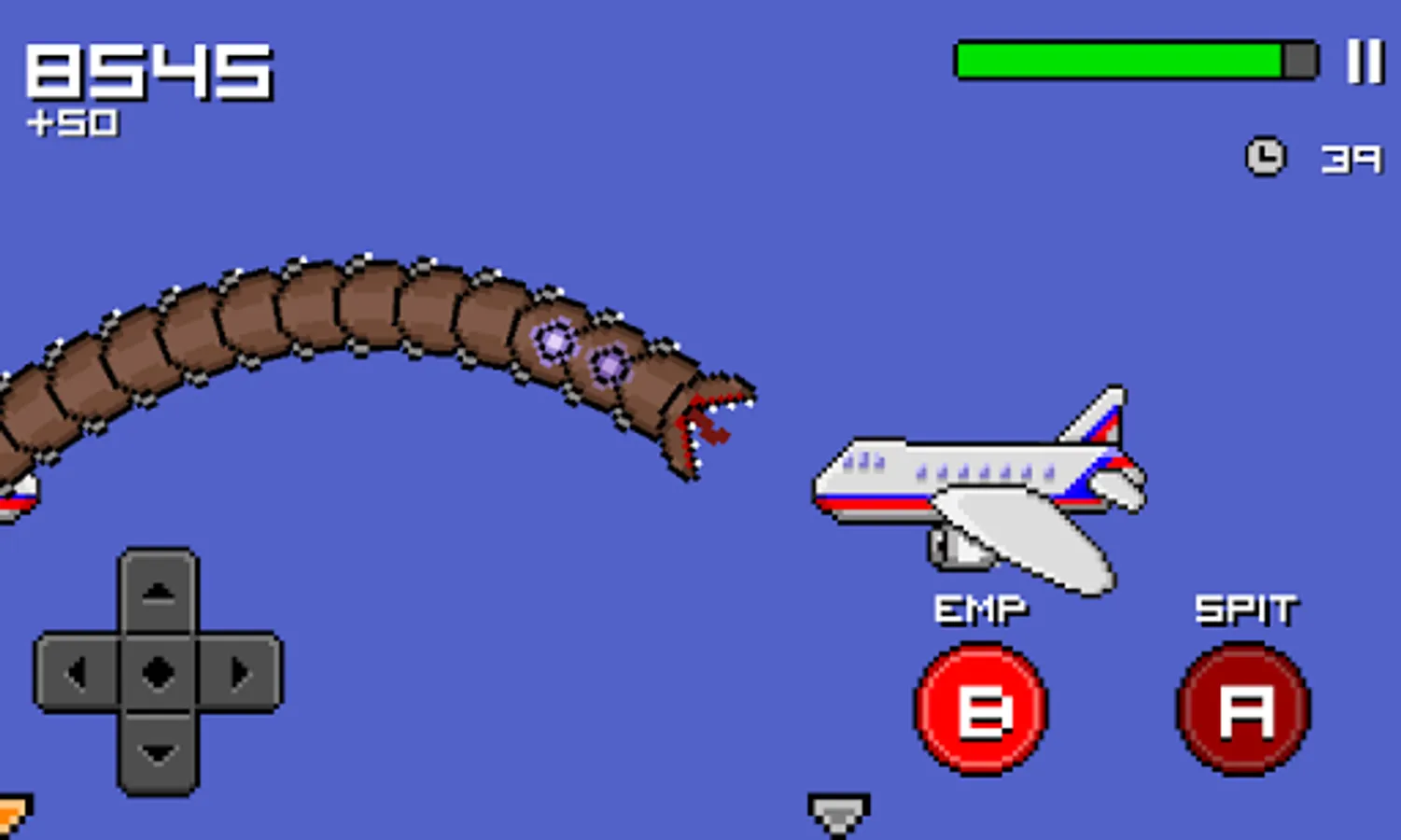 Mother Earth is on the brink of extinction and has released her last defense, the Great Death Worm, Wojira. Wojira is on a revenge mission to destroy all the Human parasites. Crawl and eat your way through waves of humans and their robots of destruction. Grow and evolve into the ultimate weapon of destruction. You are the last line of defense, can you save the world?