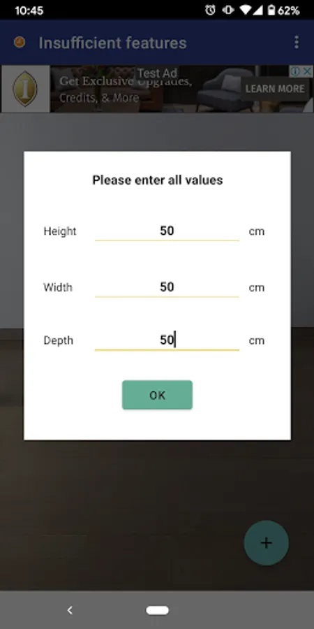 By simply specifying the height, width, and depth, you can place an object of the specified size in your room.