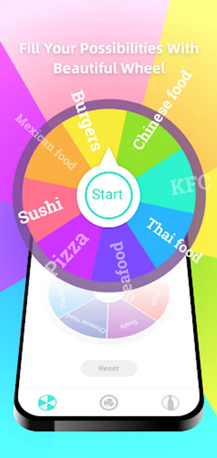 > Easily create beautiful spinner wheels. Just fill in your possibilities.