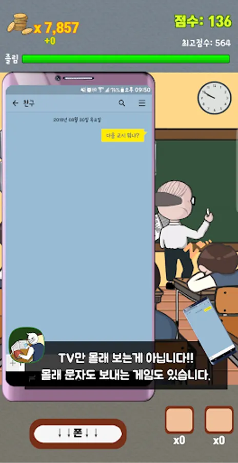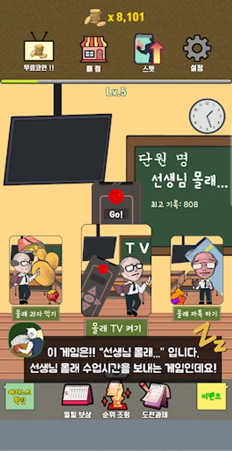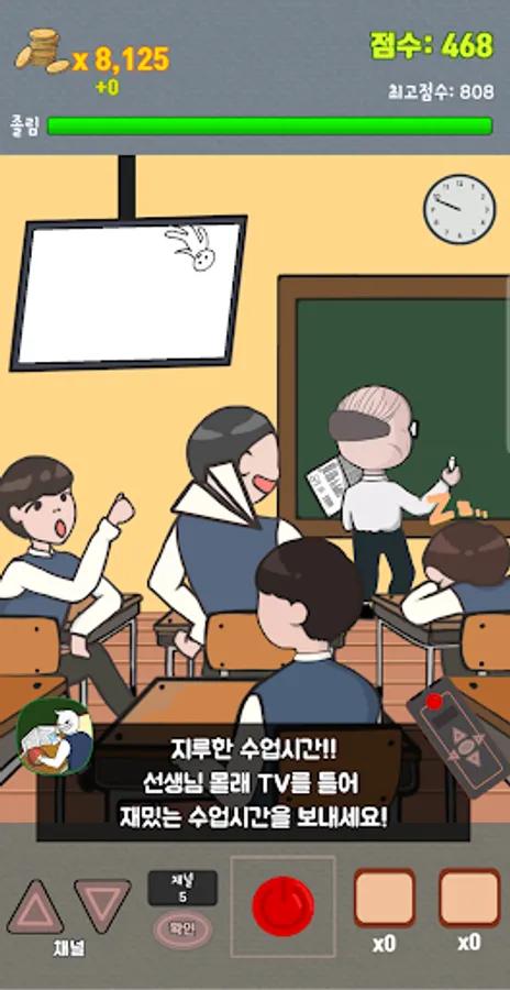 Turning on the TV is when the teacher turns around and watches the chalkboard, he plays the TV secretly and enjoys a frenzy party with his friends!