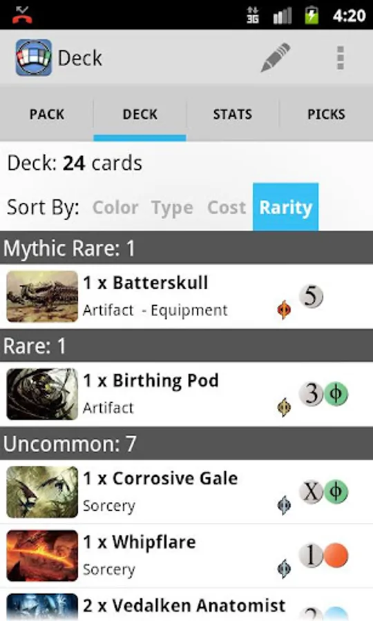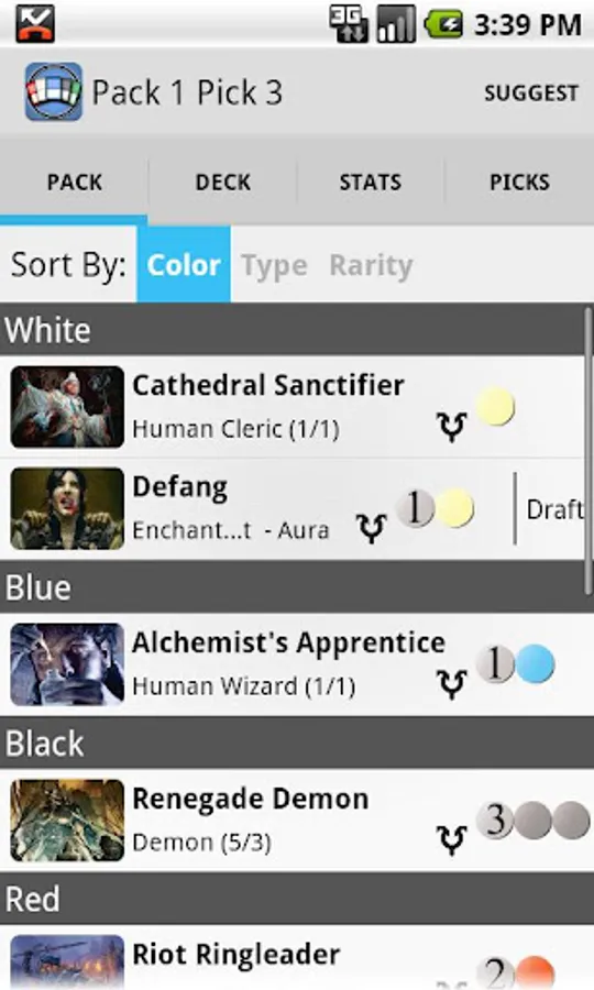 - Easily sort draft picks by type, cost, color or name