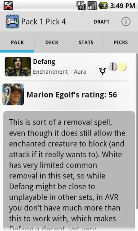 Making the right draft pick is never easy, but for the first time ever you're not alone. Marlon Egolf, DraftMagic.com columnist and Grand Prix Boston 2009 Champion, provides a full strategy analysis for each Magic card contained within the app. Guest writers include Timothy Landale, Grand Prix Kansas City 2008 Champion and Darwin Kastle, Magic Pro Tour Hall of Famer. Improve your strategy skills with the help of these card ratings, which give a detailed look into the power level of each card. Their expert ratings are also used to tune the A.I. opponents, making Decked Drafter the closest experience to actually drafting with the pros, and an incredible strategy resource.