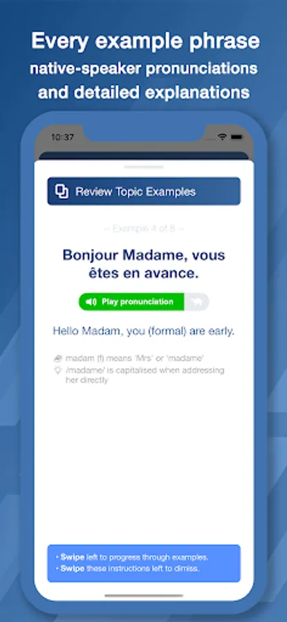 Hundreds of new words are introduced alongside the grammar to help learners quickly build their French speaking and comprehension prowess.