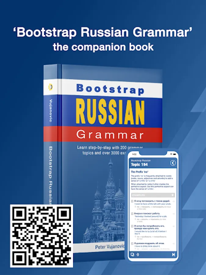 Packed with 200 grammar topics and over 3000 annotated examples, *Bootstrap Russian Grammar* is a proven grammar based approach that gets you communicating in Russian precisely and with confidence.