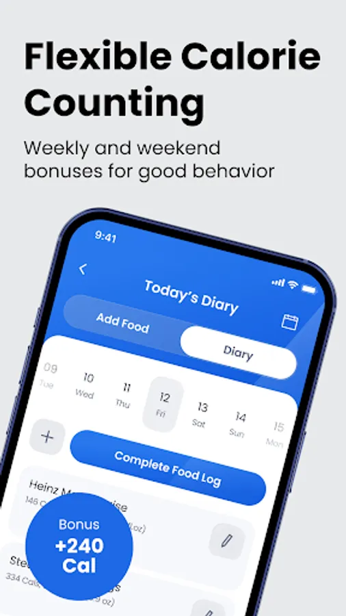 • Flexible tracking with a weekly bonus bank and extra calories for the weekend