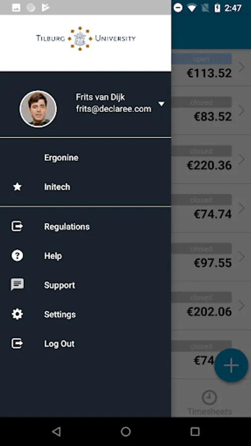 Tilburg University Declarations ensure that filing paper invoices is a thing of the past. With the mobile app you can easily take a picture of the declaration and then submit it.
