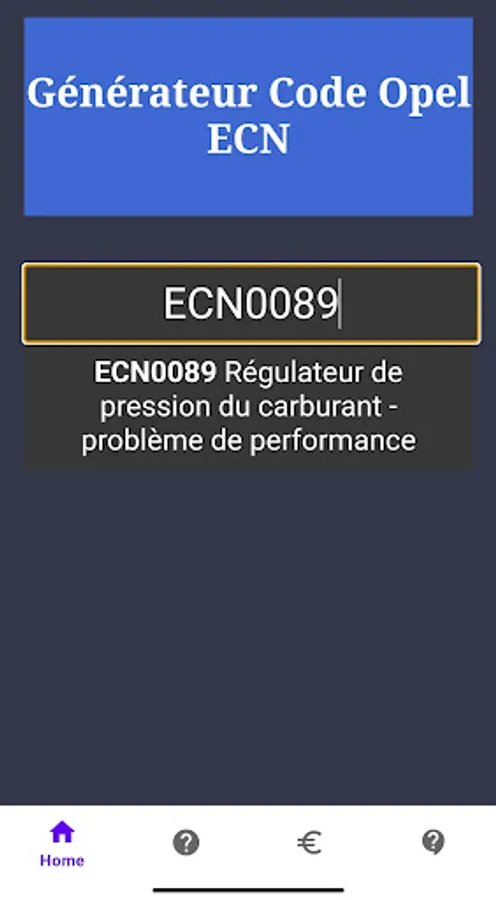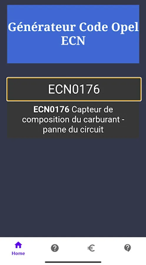Data ECN Opel - Description of ECN codes displayed in the dashboard.