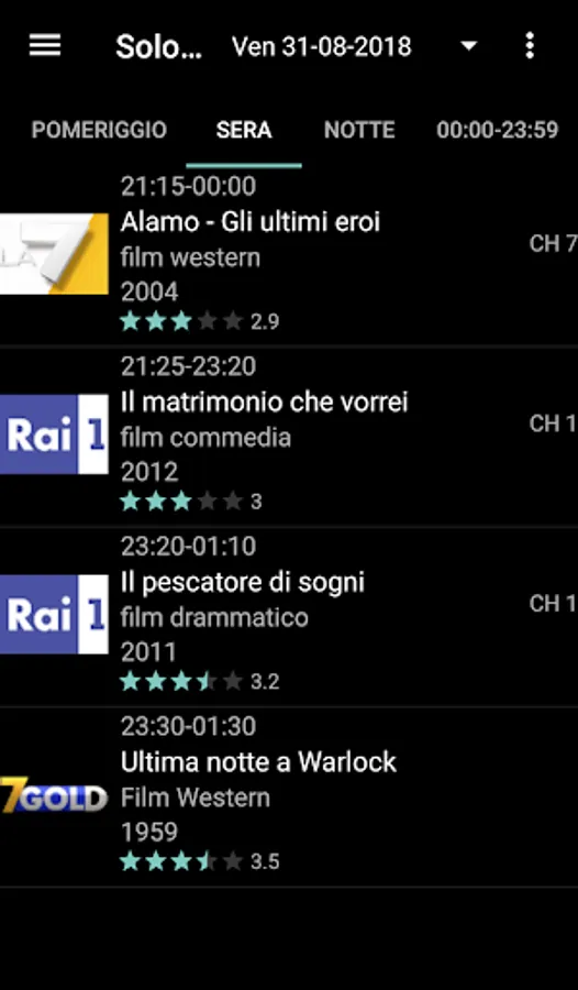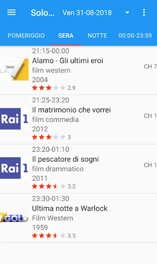 Only Film Guida TV allows you to consult the film programming on various Italian TV channels in clear digital terrestrial (Rai, Rete 4, Canale 5, Italia 1, Mediaset, La7, TV8, Nove and others) and paid on Premium and Sky platforms .