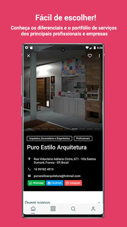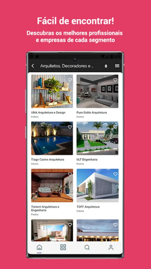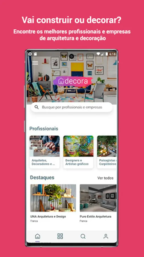 At Decora, professionals and companies have a profile page where they can publicize their work and register all the necessary information, from name and email to social networks and biography. The platform is an excellent showcase of inspiration for potential new customers.
