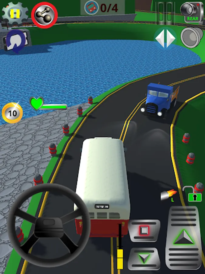 - Collectible coins for picking the various vintage buses and level up