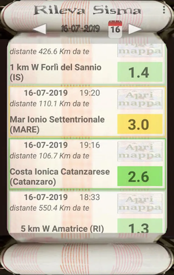 Show earthquakes day by day, you can see the seismic events from 01/01/1995 to today, it will be possible to know the time, the magnitude and the distance between you and every earthquake.