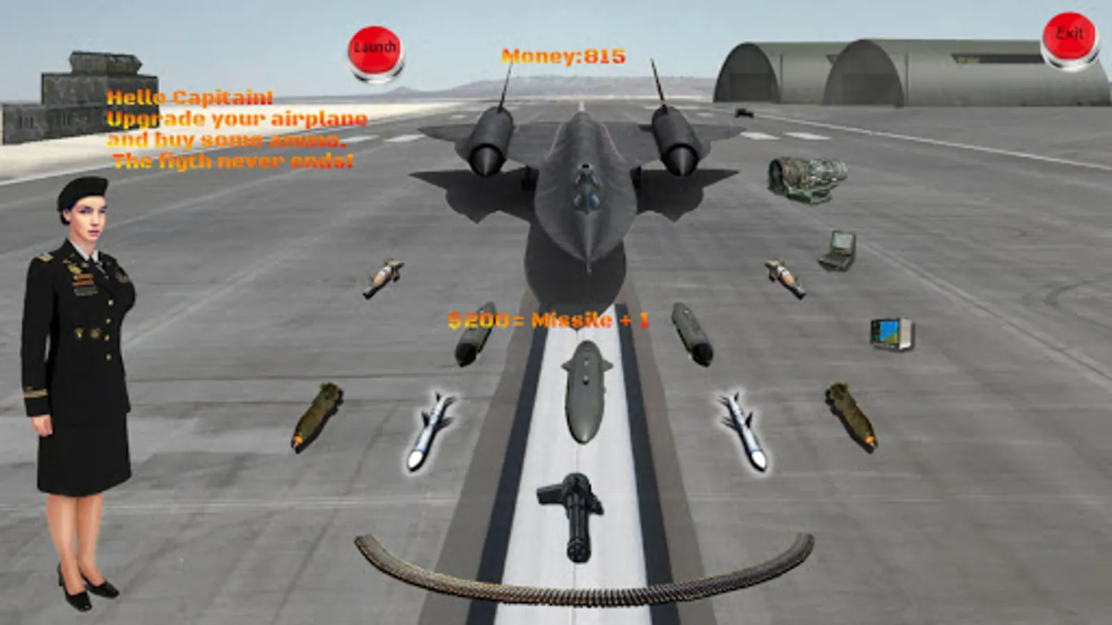 Buy ammo for cannons, air-air missiles, bombs, laser guided bombs, and upgrade your weapons`s firerate.