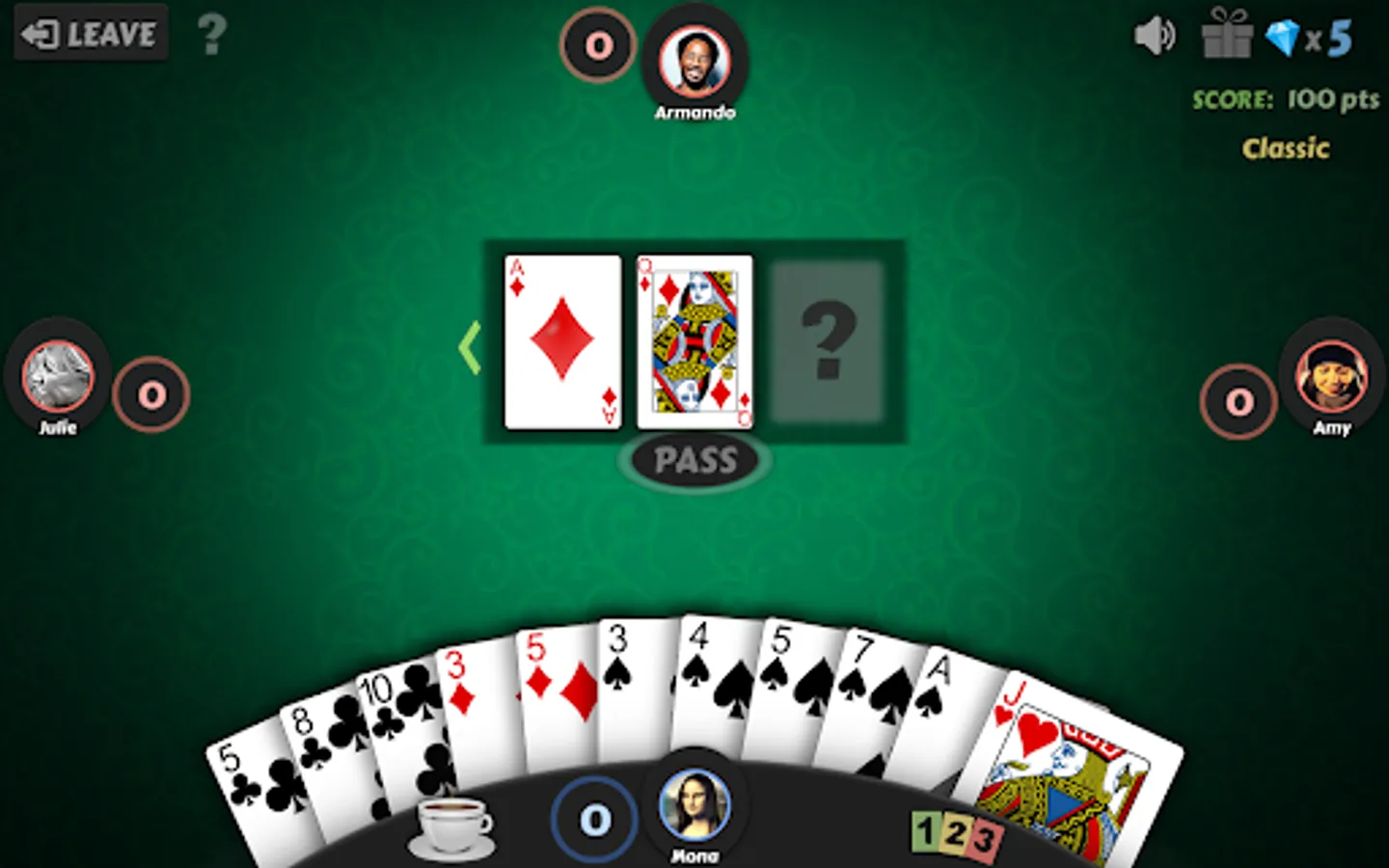 Play classic mode or jack of diamonds mode against smart Ai opponents.