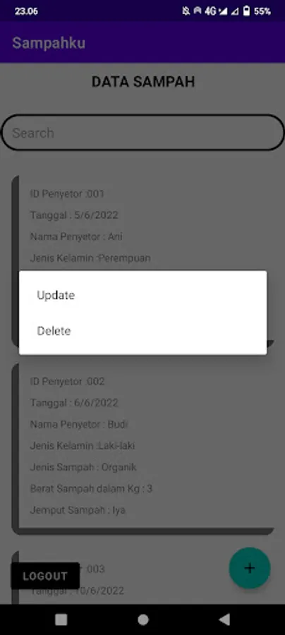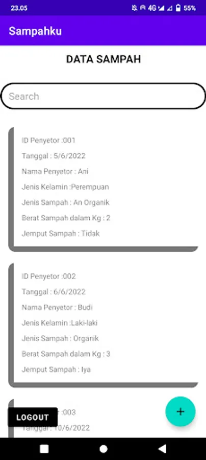 The waste bank application is made to make it easier for people to store data and ensure the security of the data that has been inputted