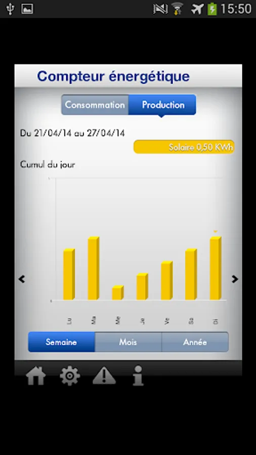 with the energy meter (estimated consumption in terms of heating, hot water and cooling and solar power).