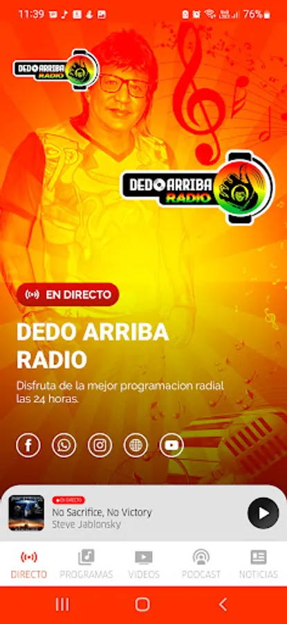 DEDO ARRIBA RADIO, is a tribute to one of the best broadcasters of all time in the city of Barranquilla "EL LIDER" JAIRO PABA SALCEDO, in this space you can enjoy the best music of yesterday and especially his renowned program "FRIDAY TO REMIND".