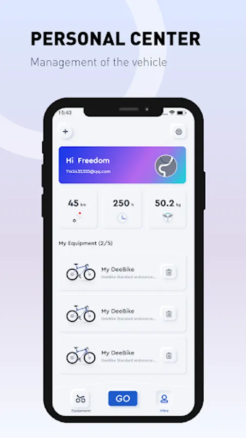 Riding: Accurately obtain information such as the vehicle's quantity of electricity and mileage status, driving data, etc., to provide you with an efficient and convenient riding experience.