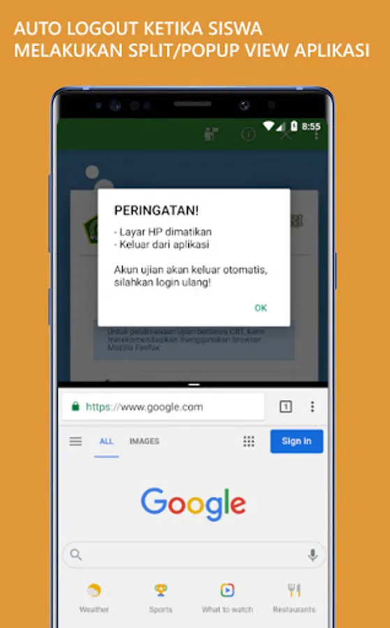 The launcher application for E-Learning and CBT of the Madrasah Ibtidaiyah Monkey Group in Batu City. This application was made to facilitate the students of KKMI Kota Batu in implementing distance learning and exams.