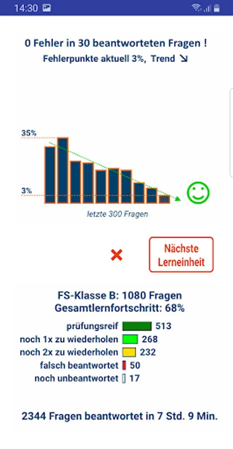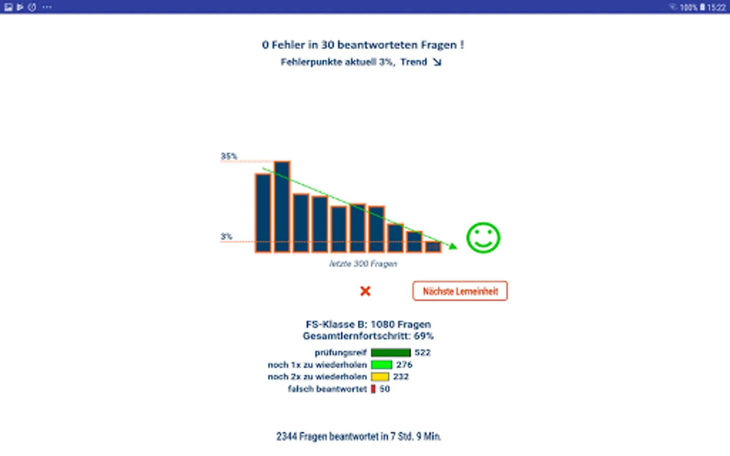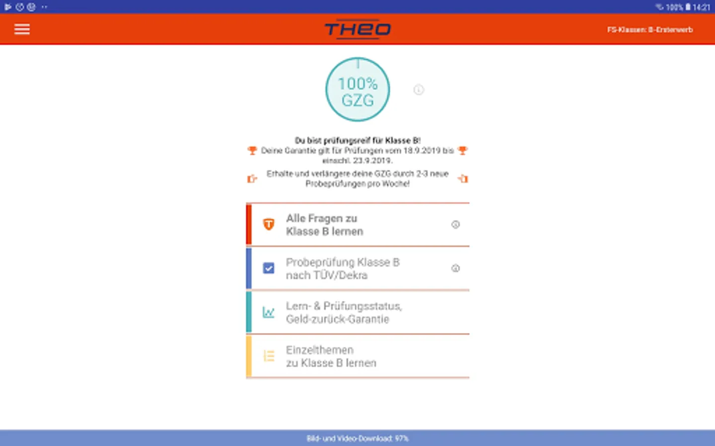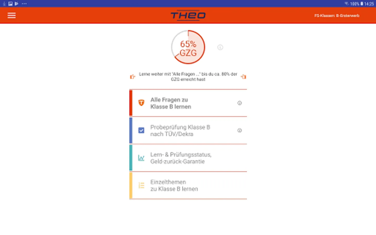 - Money back guarantee for the exam fee if the theory exam fails and the learning objective is reached in advance (see GZG conditions in the app)