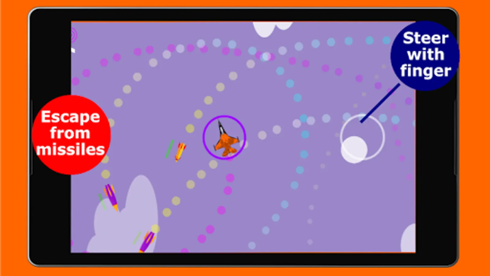 - Escape - avoid incoming homing missiles aiming to terminate you, dodge missiles and make them collide each other to increase your score.