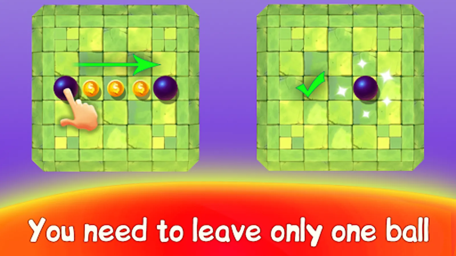 Move the balls with your finger to dislodge all the balls and leave one to reach the GOAL of puzzle. However, the attached blocks can not be moved. Ready for the game? Download and start solving puzzles now.