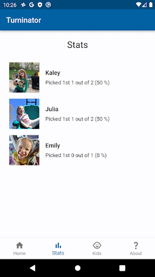 Turninator is a simple, fun app that lets you define a list of people and tell you who is up! Track stats so you'll be able to respond to "but she always goes first" with cold hard facts.