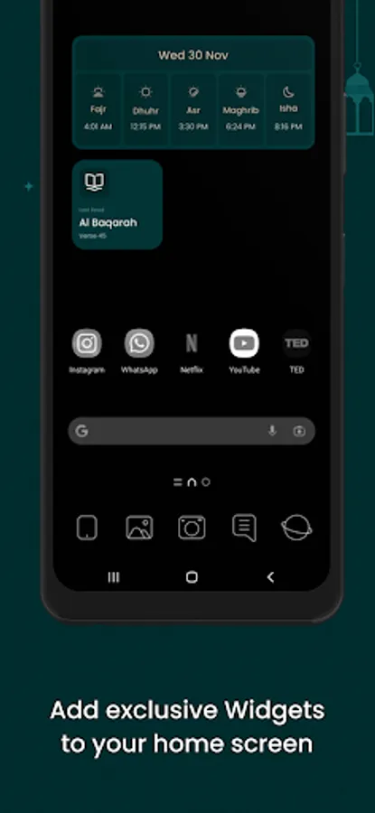 Access prayer times and the last read from the Quran easily with Deen Widgets.